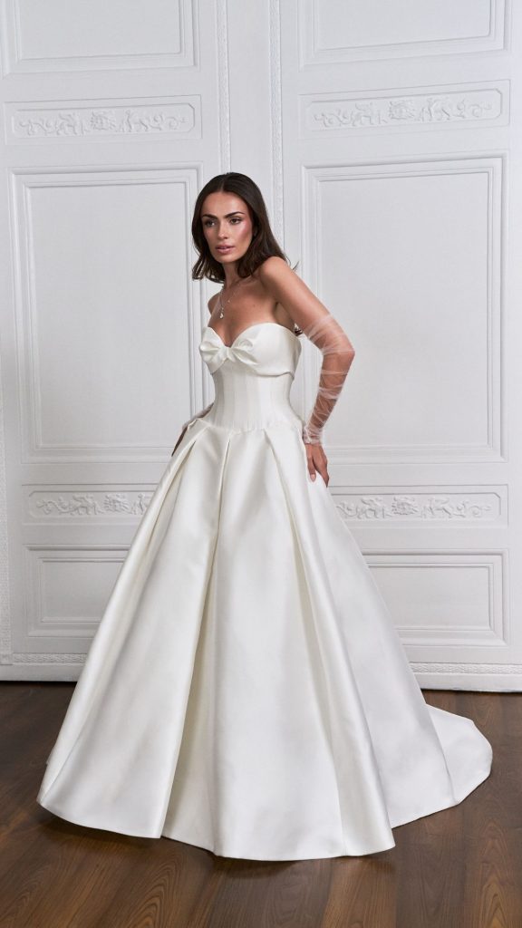 “I’m drawn to a return to purity: refined silhouettes, thoughtful construction, and subtle drama. Brides today want authenticity. They’re choosing pieces that feel personal, intelligent, and enduring rather than overtly decorative.”