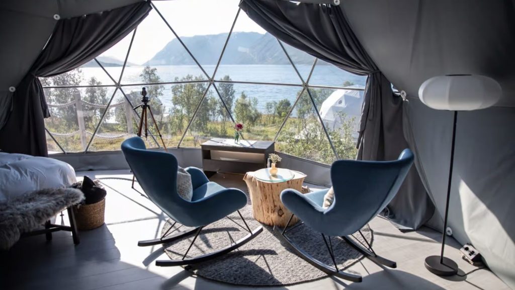Norway’s Isbreen The Glacier retreat sees heat and cold collide, as guests warm in Finnish saunas and outdoor hot tubs after walks and Arctic swims. This three-night retreat is a collection of luxury thanks to its geodesic igloos nestled beneath the Finnmark Alps. Each is designed for comfort, with views of the fjord and surrounding peaks. Days are filled with privately guided activities, including snowmobiling across frozen wilderness, cross-country skiing or ski touring with local guides, and snowshoeing under the night sky in search of the Northern Lights. Afternoons are reserved for relaxation, with seasonal cuisine prepared by an on-site chef. Evenings are then spent dining in the main lodge, sharing stories with fellow travellers or retreating to your igloo to watch the Aurora.